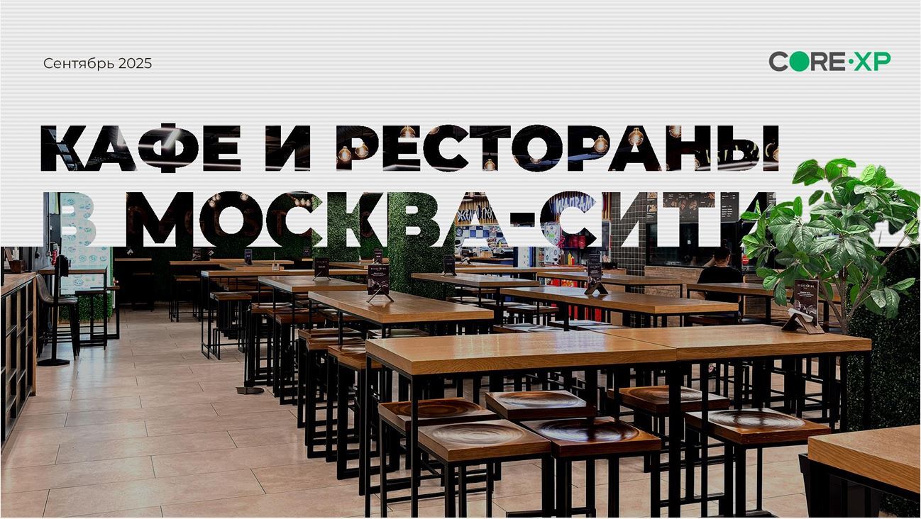 Отчет "Торговые помещения в Москва-Сити" компании CORE XP за сентябрь 2025 года посвящен анализу рынка общественного питания и торговых помещений в деловом комплексе Москва-Сити.